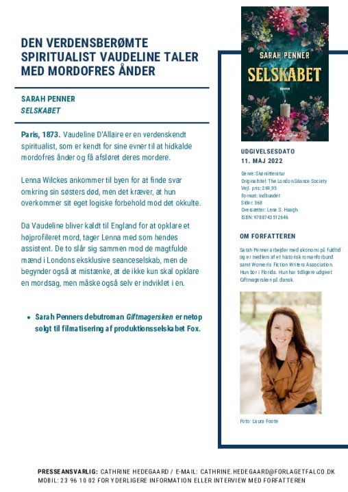 - Sarah Penners debutroman Giftmagersken er netop solgt til filmatisering af produktionsselskabet Fox.