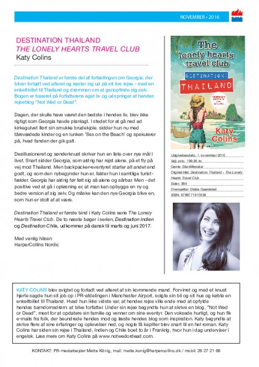 Destination Thailand er første bind i Katy Colins serie The Lonely Hearts Travel Club. De to næste bøger i serien, Destination Indien og Destination Chile, udkommer på dansk til marts og juni 2017.