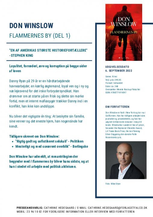 Don Winslow er født i New York og bor nu i Californien. Han har tidligere arbejdet som journalist og privatdetektiv, og han har udgivet kritikerroste romaner i knap 30 lande. Winslowhar vundet et hav af priser, herunder the Raymond Chandler Award, LA Times Book Prize, the Ian Fleming Silver Dagger og den danske Palle Rosenkrantz-pris.