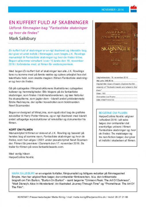 Med bogen En kuffert fuld af skabninger kan alle J.K. Rowlings fans nu komme med på første række og opleve arbejdet hos det talentfulde hold, som skabte magien i filmen Fantastiske skabninger og hvor de findes.