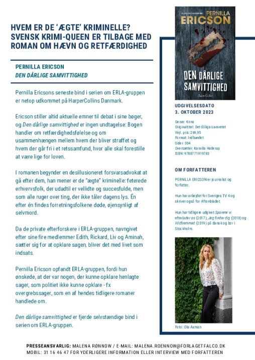 Pernilla Ericsons seneste bind i serien om ERLA-gruppen er netop udkommet på HarperCollins Danmark.
