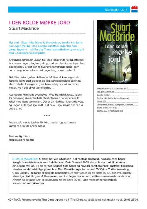 Nyt bind i Stuart MacBrides kritikerroste og barske krimiserie om Logan McRae. Den skotske forfatters bøger har flere gange ligget nr. 1 på Sunday Times bestsellerliste og er solgt i over 2,5 millioner eksemplarer.