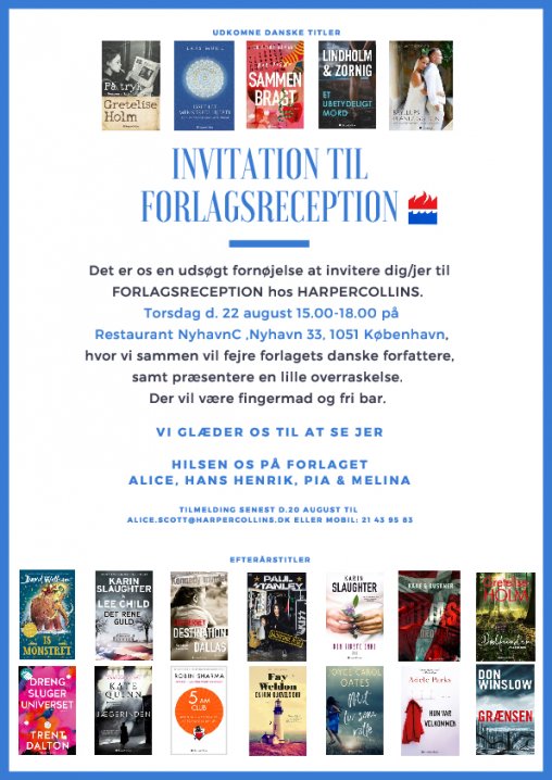 Invitation til forlagsreception d. 22. august kl. 15-18