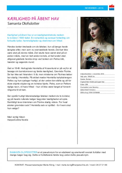 Samanta Olofsdotter er et pseudonym for en etableret og anerkendt svensk forfatter med mange bøger bag sig. Dette er forfatterens første bog under dette pseudonym.