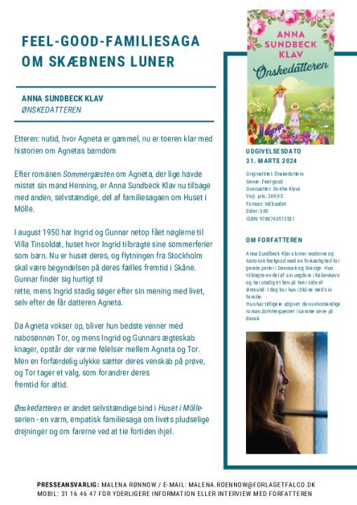 Ønskedatteren af Anna Sundbeck Klav: Udkommer 28. marts
