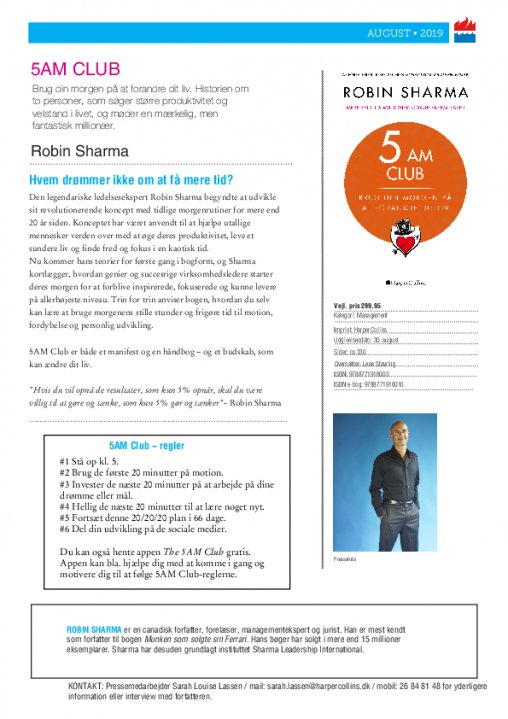 Nyhed på vej fra HarperCollins: 5AM CLUB af Robin Sharma