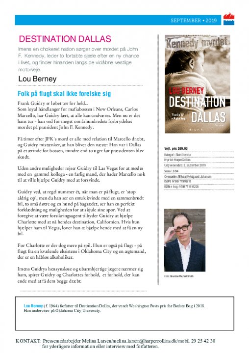 Lou Berney (f. 1964) forfatter til Destination Dallas, der vandt Washington Posts pris for Bedste Bog i 2018. Han underviser på Oklahoma City University.