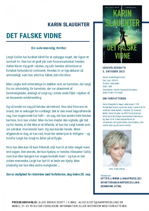 Nyhed på vej fra HarperCollins: DET FALSKE VIDNE af Karin Slaughter