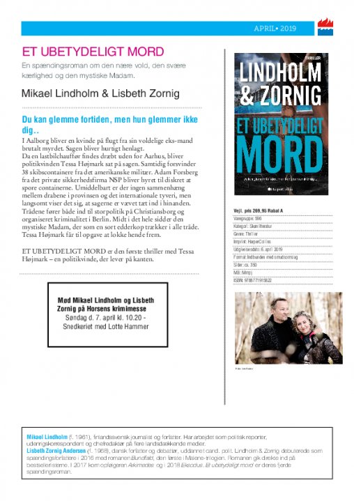 Nyhed på vej fra HarperCollins: ET UBETYDELIGT MORD af Mikael Lindholm og Lisbeth Zornig