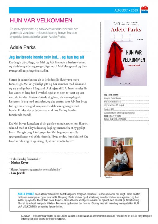 Nyhed på vej fra HarperCollins: HUN VAR VELKOMMEN af Adele Parks