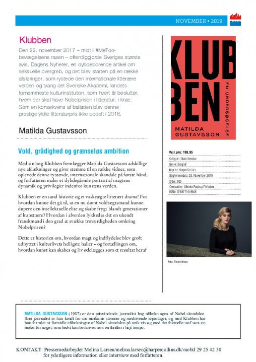 Nyhed på vej fra HarperCollins: KLUBBEN af Matilda Gustavsson