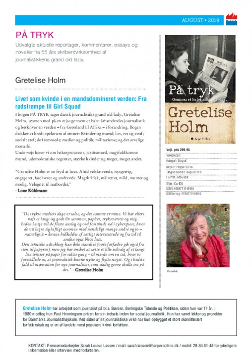 Nyhed på vej fra Harpercollins: PÅ TRYK af Gretelise Holm