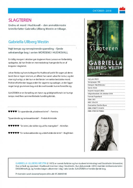 Nyhed på vej fra HarperCollins: SLAGTEREN af Gabriella Ullberg Westin