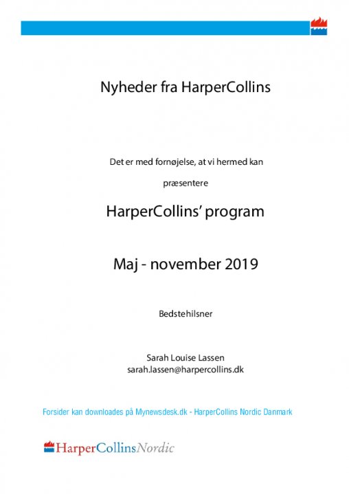Det er med fornøjelse, at vi hermed kan præsentere HarperCollins’ program fra maj - november 2019: