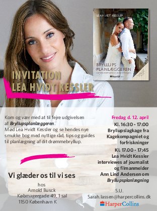 Kl. 17.00 - 17:45 Lea Hvidt Kessler interviewes af journalist og filmanmelder Ann Lind Andersen om Bryllupsplanlægning