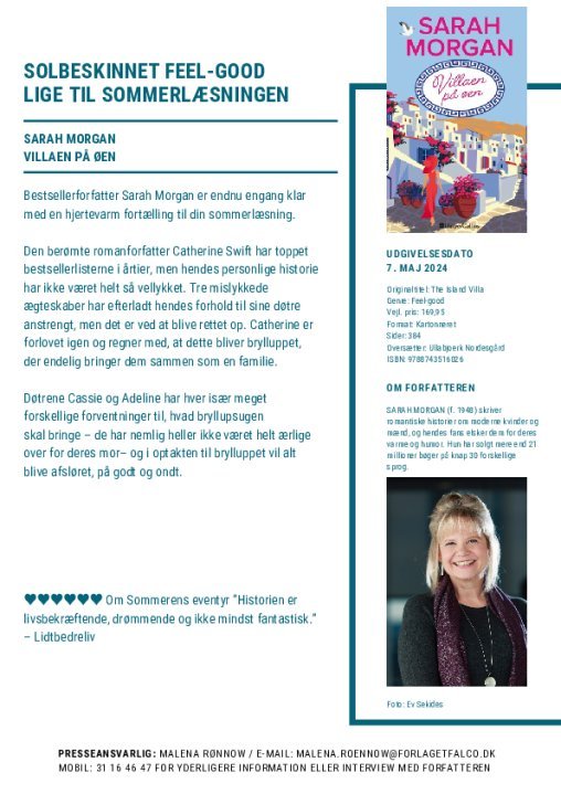 Bestsellerforfatter Sarah Morgan er endnu engang klar med en hjertevarm fortælling til din sommerlæsning.
