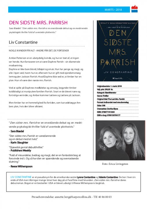 Udkommer i dag: "Den sidste mrs. Parrish" af Liv Constantine