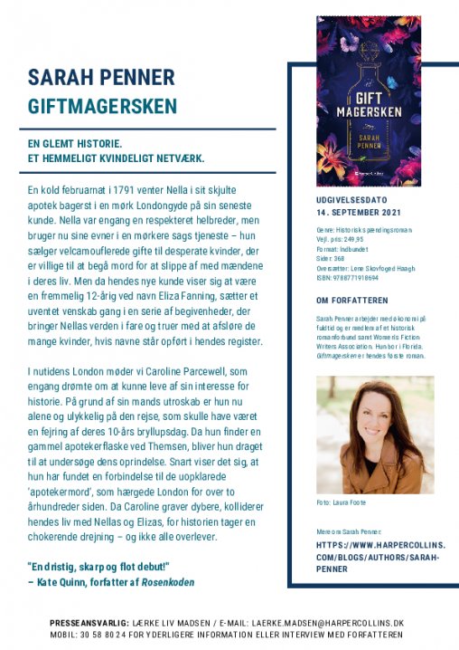 Udkommer i dag: GIFTMAGERSKEN af Sarah Penner
