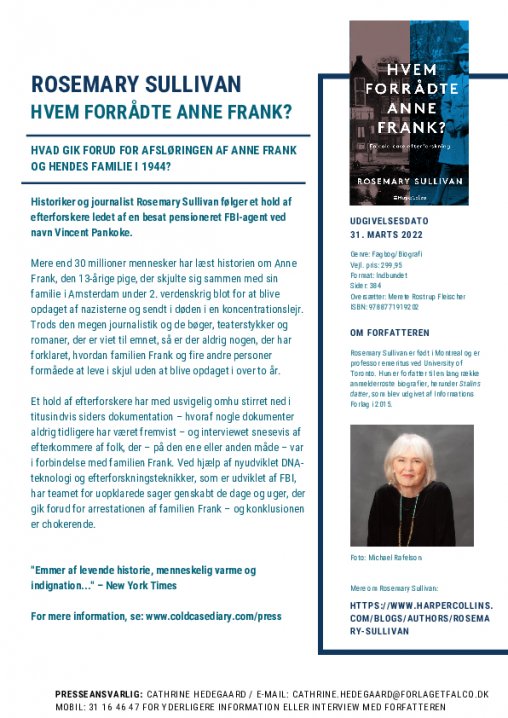 Udkommer i dag på HarperCollins: HVEM FORRÅDTE ANNE FRANK? af Rosemary Sullivan