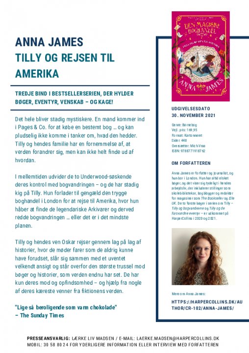 Udkommer i dag: TILLY OG REJSEN TIL AMERIKA af Anna James