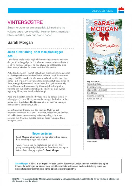 USA Today og Sunday Times bestsellerforfatter Sarah Morgan skriver romantiske historier om moderne kvinder og mænd, og hendes fans elsker dem for deres varme og humoristiske fingeraftryk.